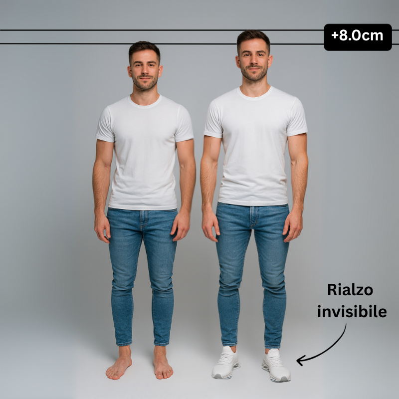El secreto está en su interior: una estructura ergonómica invisible que te hace parecer entre 4 y 10 cm más alto, sin que nadie lo note.