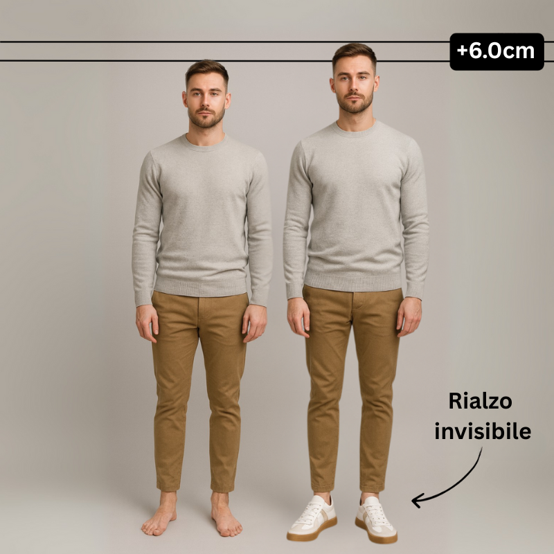 El secreto está en su interior: una estructura ergonómica invisible que te hace parecer entre 4 y 10 cm más alto, sin que nadie lo note.