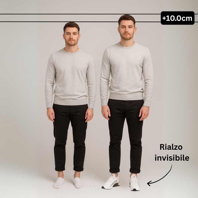 El secreto está en su interior: una estructura ergonómica invisible que te permite parecer entre 4 y 10 cm más alto, sin que nadie lo note.
