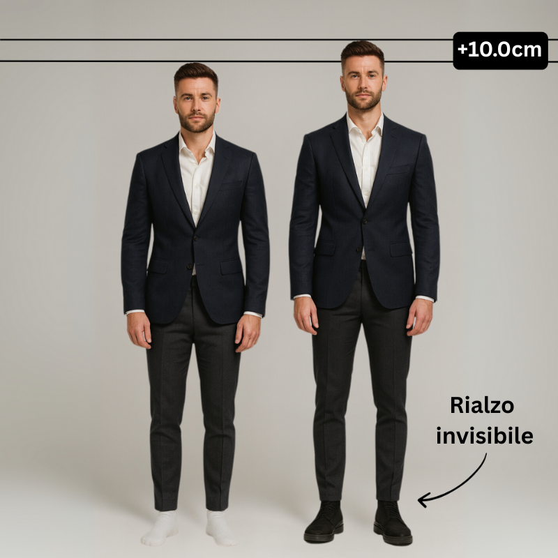 El secreto está en su interior: una estructura ergonómica invisible que te permite parecer entre 4 y 10 cm más alto, de forma natural y completamente imperceptible.