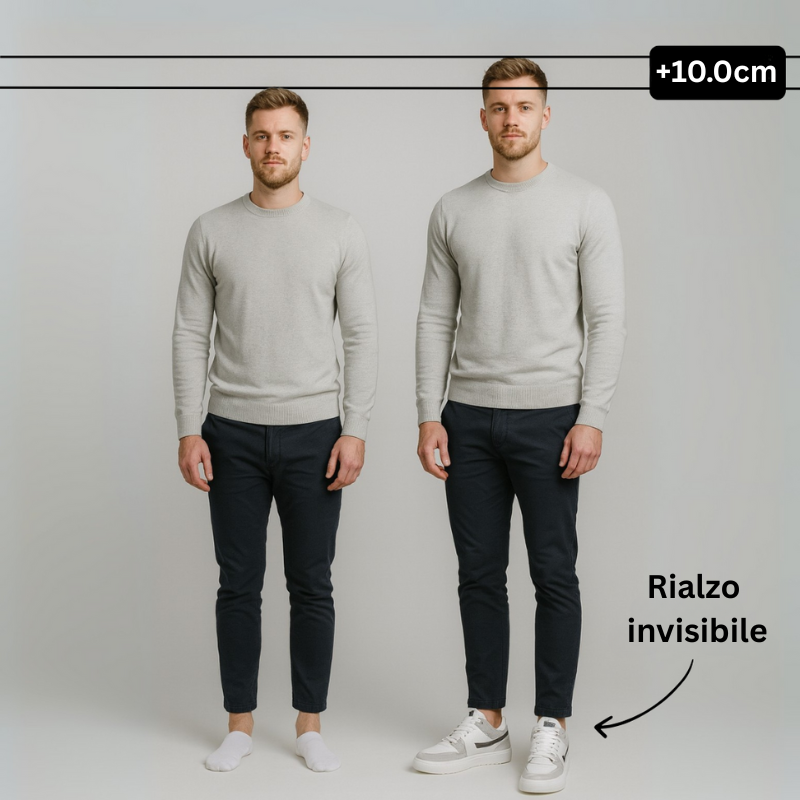 El secreto está en su interior: una estructura ergonómica invisible que te permite parecer entre 4 y 10 cm más alto, sin que nadie lo note.